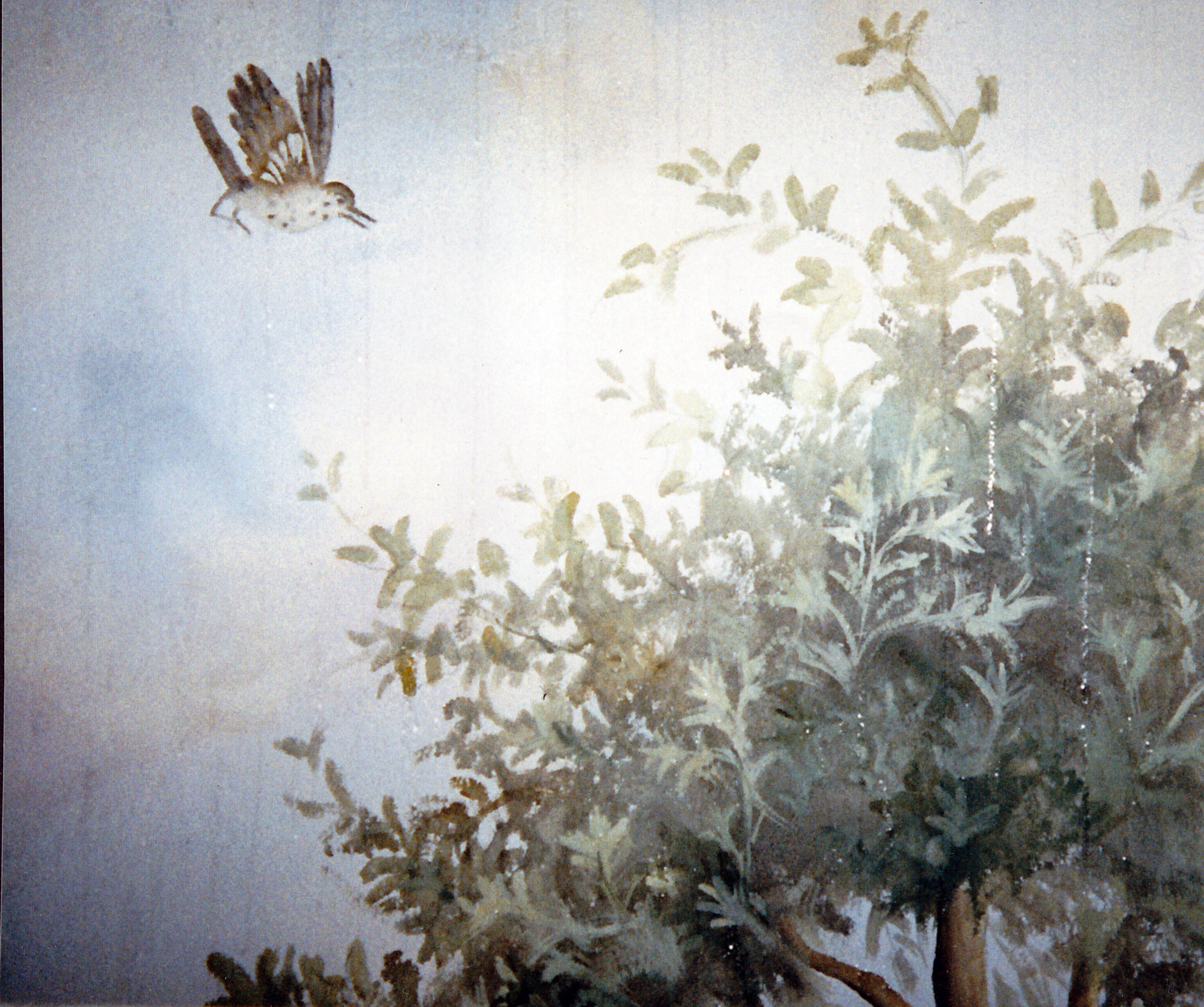 Fresque extérieure pour une maison de ville à Biarritz dans une courette. Peinture acrylique sur peinture de ravalement.