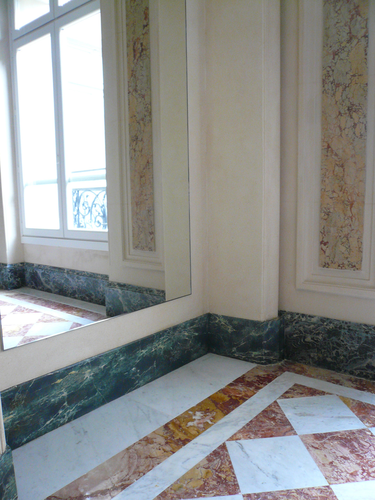 Marbres peints pour le siège du STIF, rue de Châteaudun à Paris. Peinture acrylique sur plinthes.