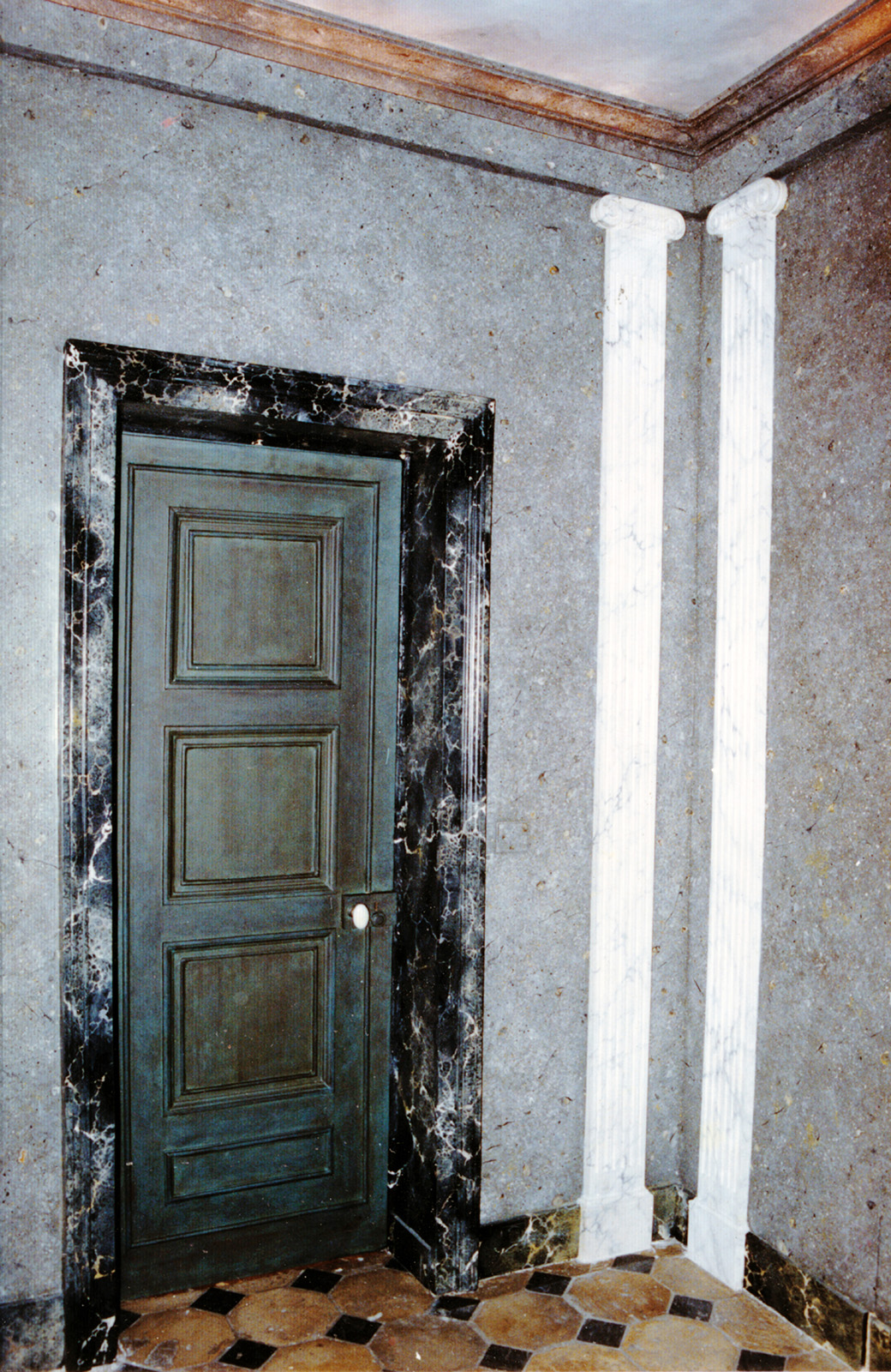 Pour un appartement parisien quai Voltaire, trompe-l'oeil, marbres et granits. Peinture à l'huile.