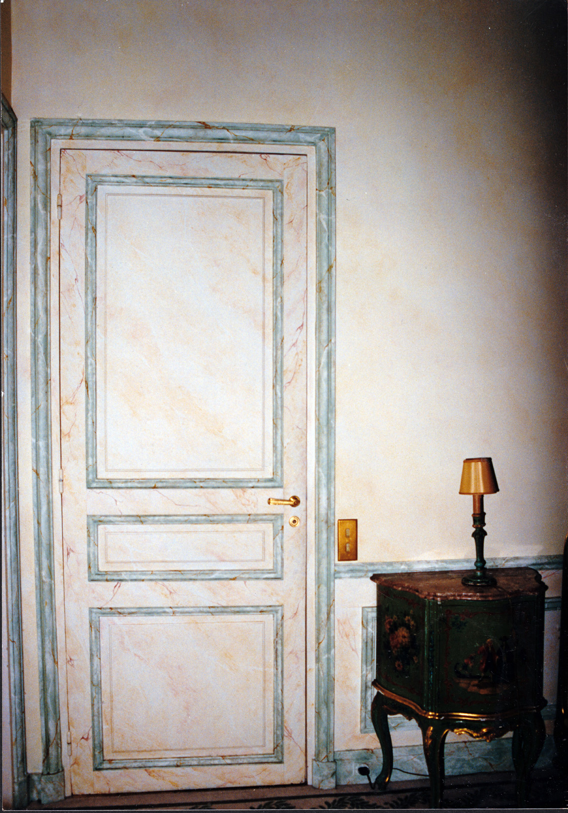 Pour un appartement avenue Henri-Martin à Paris, faux-marbres et patines "à l'italienne". Peinture acrylique.