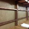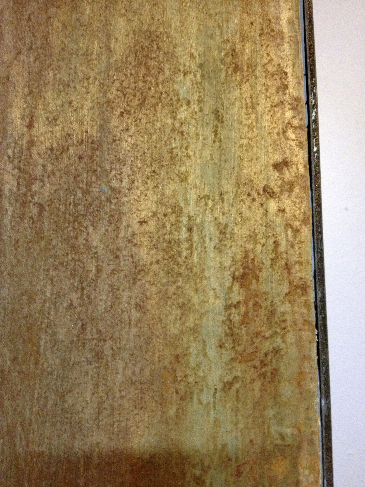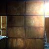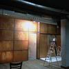 Pour la salle de concert de la Bellevilloise à Paris, décor peint "sous-marin". Poudre de fer, colle, peinture acrylique, enduit coloré.