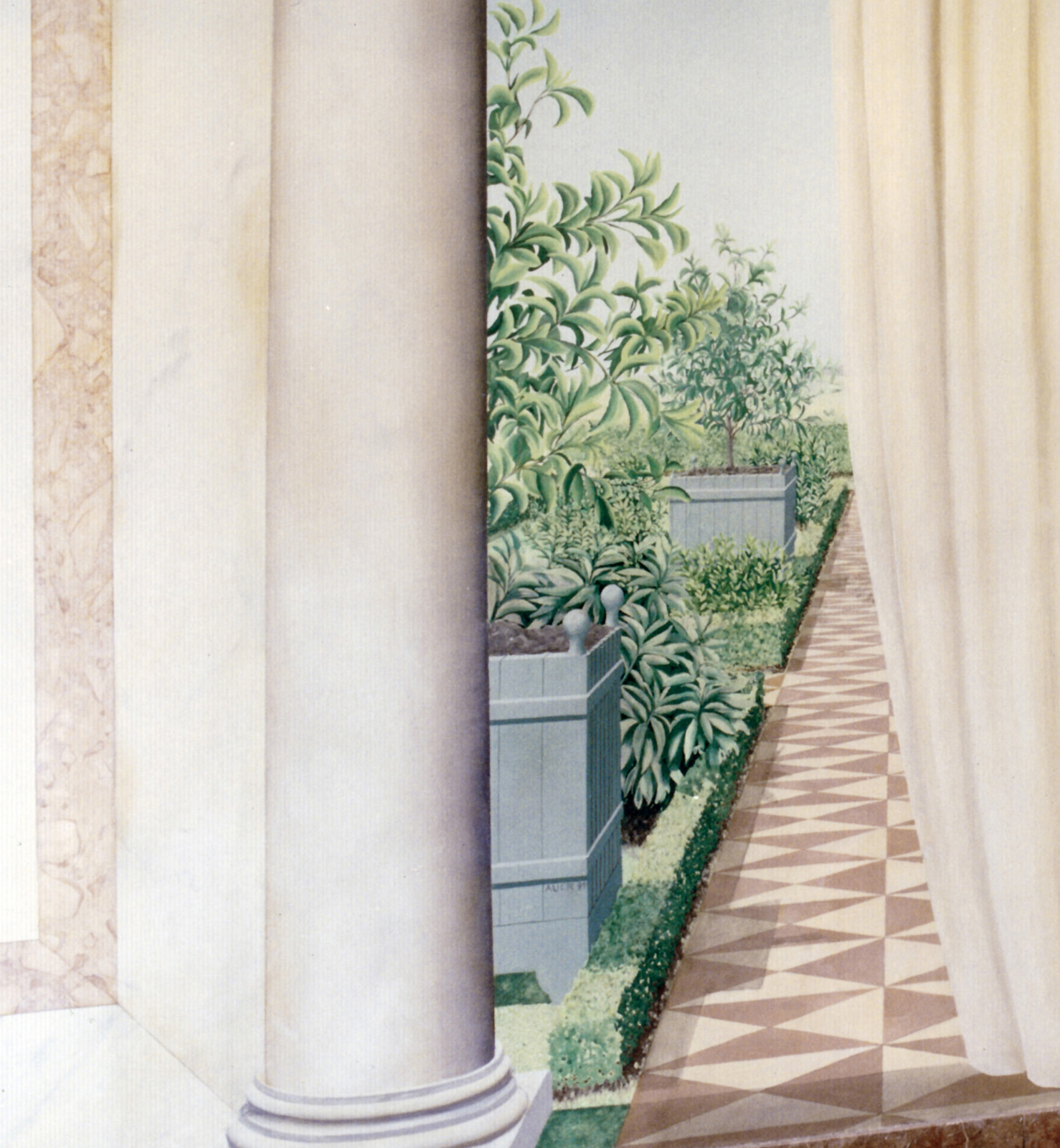 Ensemble de fresques pour l'épicerie Fauchon, place de la Madeleine à Paris. Acrylique sur toile, marouflée.